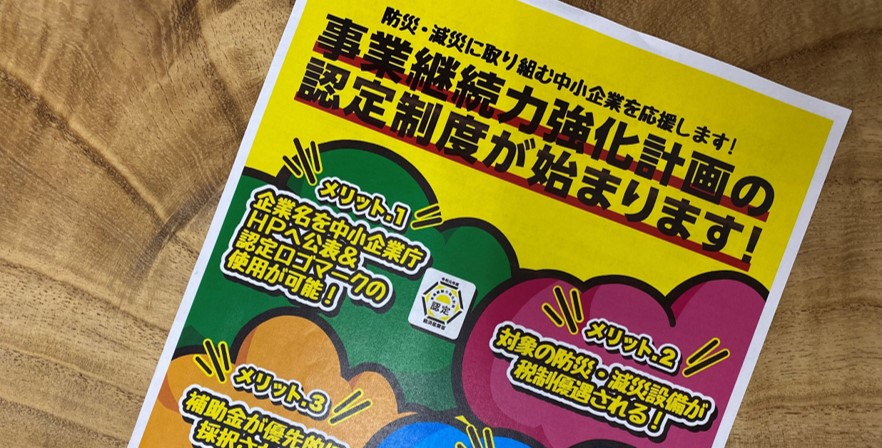 「事業継続力強化計画」認定の申請・準備はお済みですか??