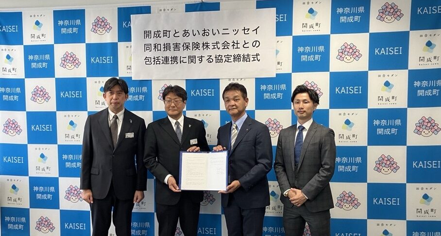 令和7年8月29日、開成町とあいおニッセイ同和損害保険株式会社と弊社にて、包括連携に関する協定を結びました。